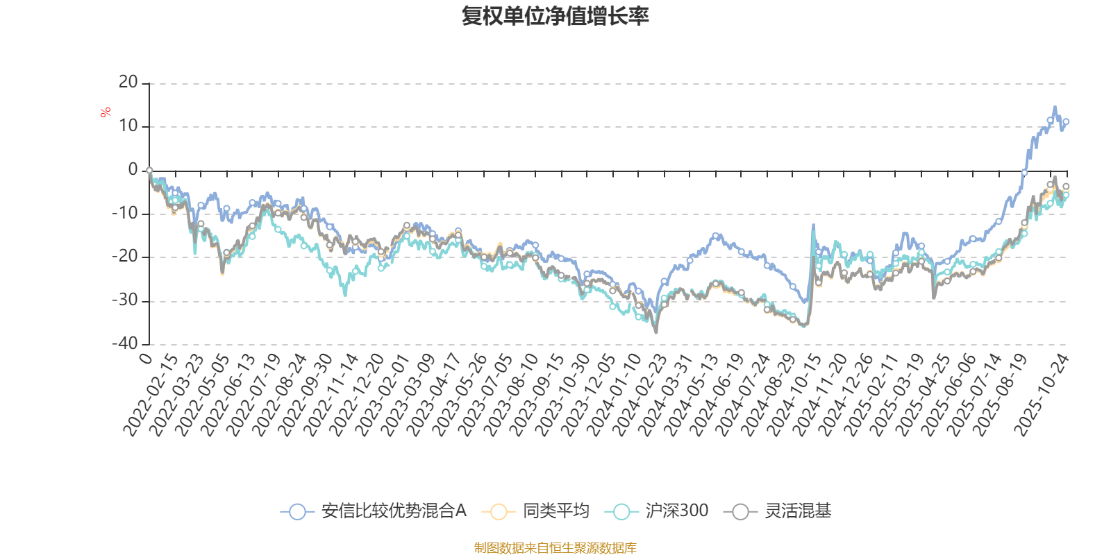 截至10月24日,安信比较优势混合A近三个月复权单位净值增长率为19.66%,位于同类可比基金370/1287;近半年复权单位净值增长率为40.17%,位于同类可比基金235/1287;近一年复权单位净值增长率为35.94%,位于同类可比基金303/1287;近三年复权单位净值增长率为32.45%,位于同类可比基金276/1286。