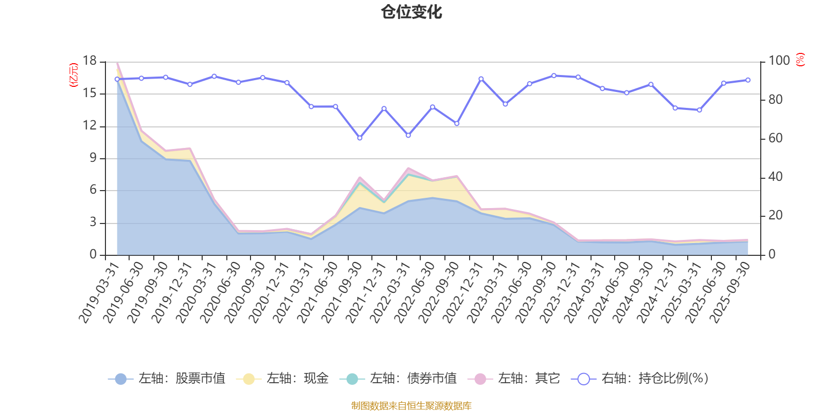 据定期报告数据统计,近三年平均股票仓位为85.95%,同类平均为72.16%。2023年三季度末基金达到92.79%的最高仓位,2021年三季度末最低,为60.57%。