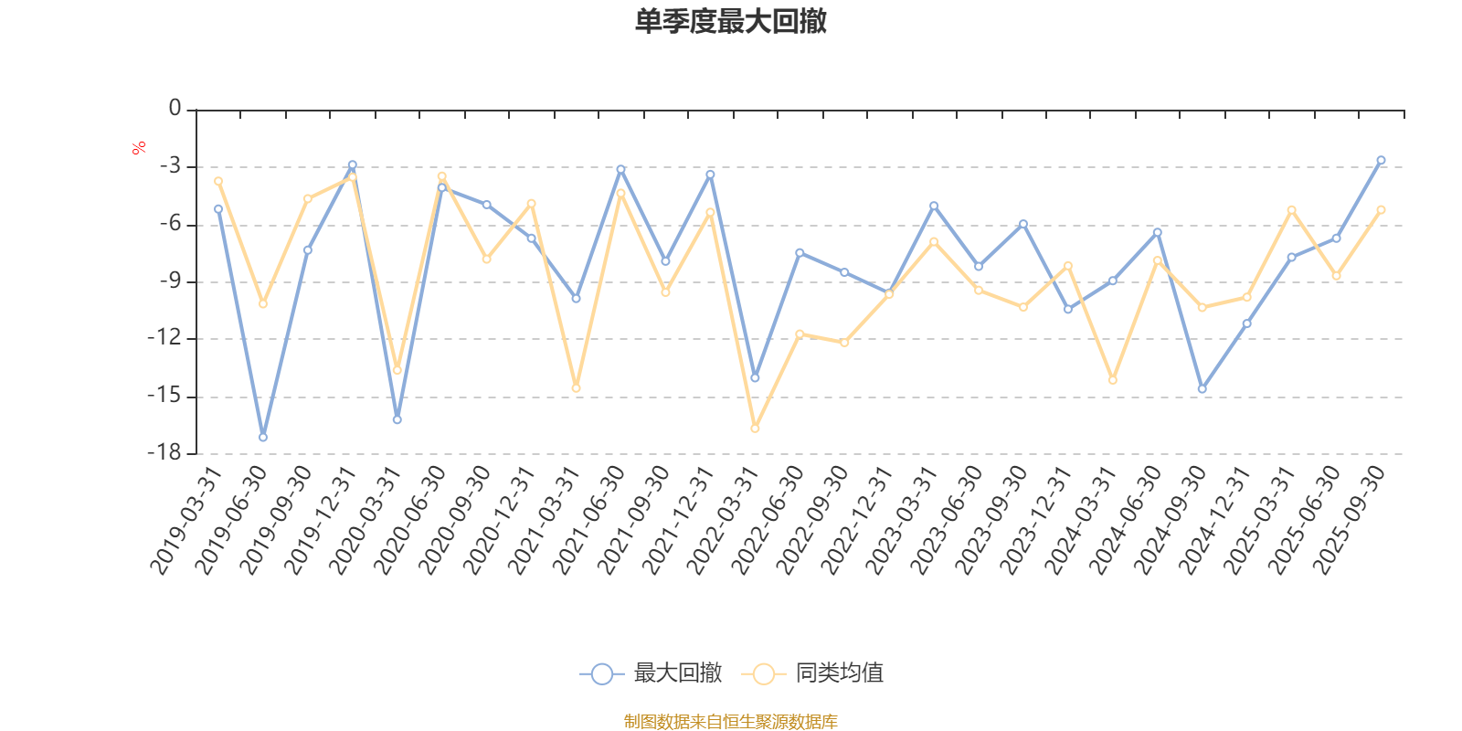 截至10月24日,基金近三年最大回撤为23.32%,同类可比基金排名336/1283。单季度最大回撤出现在2019年二季度,为17.14%。