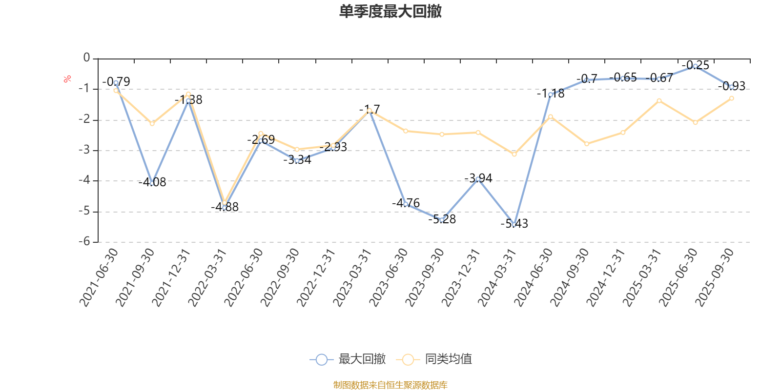 截至10月24日,基金近三年最大回撤为12.5%,同类可比基金排名474/552。单季度最大回撤出现在2024年一季度,为5.43%。