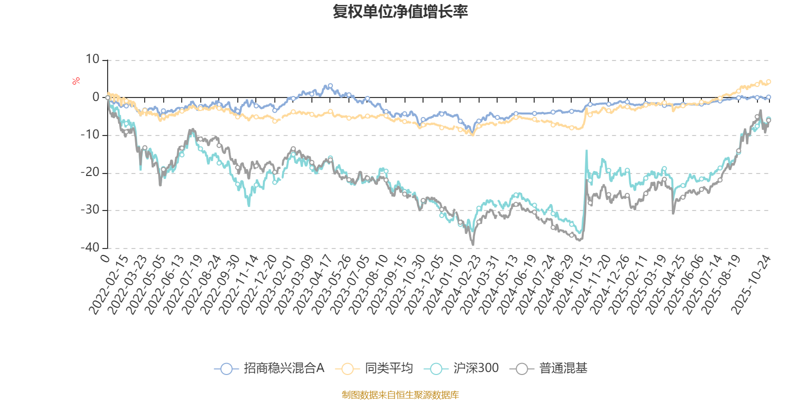截至10月24日,招商稳兴混合A近三个月复权单位净值增长率为0.68%,位于同类可比基金517/629;近半年复权单位净值增长率为1.96%,位于同类可比基金568/629;近一年复权单位净值增长率为2.11%,位于同类可比基金603/623;近三年复权单位净值增长率为1.40%,位于同类可比基金503/556。