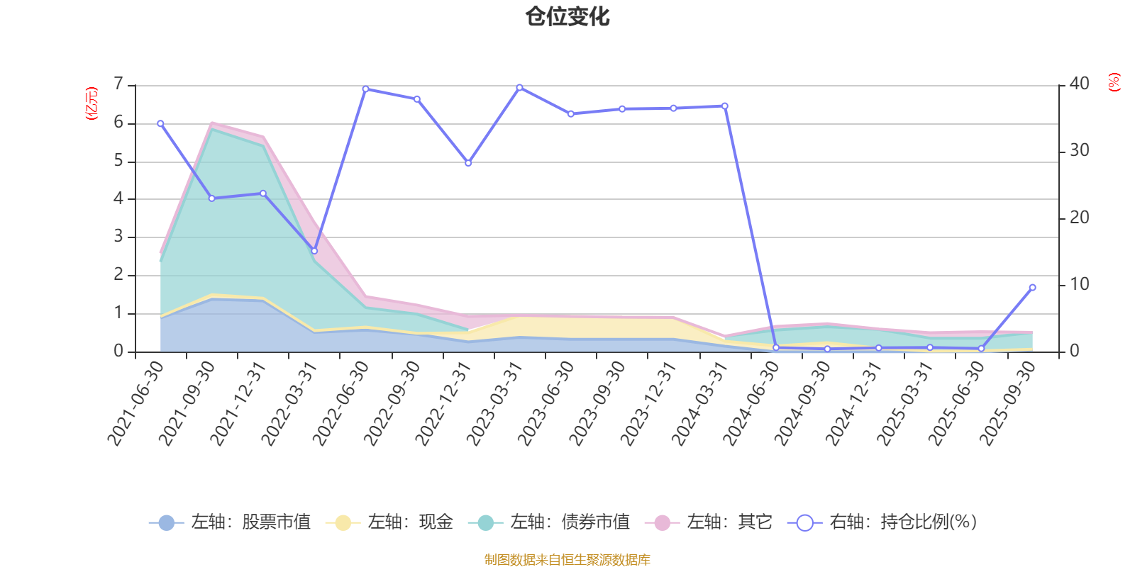 据定期报告数据统计,近三年平均股票仓位为18.83%,同类平均为19.03%。2023年一季度末基金达到39.63%的最高仓位,2024年三季度末最低,为0.44%。