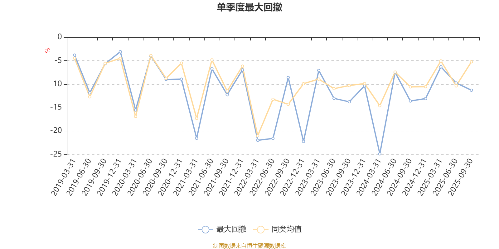 通过所选区间该基金净值增长率分位图,可以观察该基金与同类基金业绩比较情况。图为坐标原点到区间内某时点的净值增长率在同类基金中的分位数。