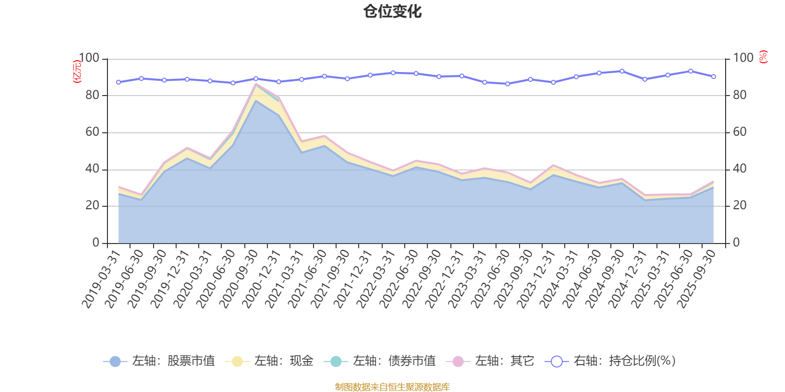 据定期报告数据统计,近三年平均股票仓位为90.01%,同类平均为85.99%。2025年上半年末基金达到93.32%的最高仓位,2023年上半年末最低,为86.44%。