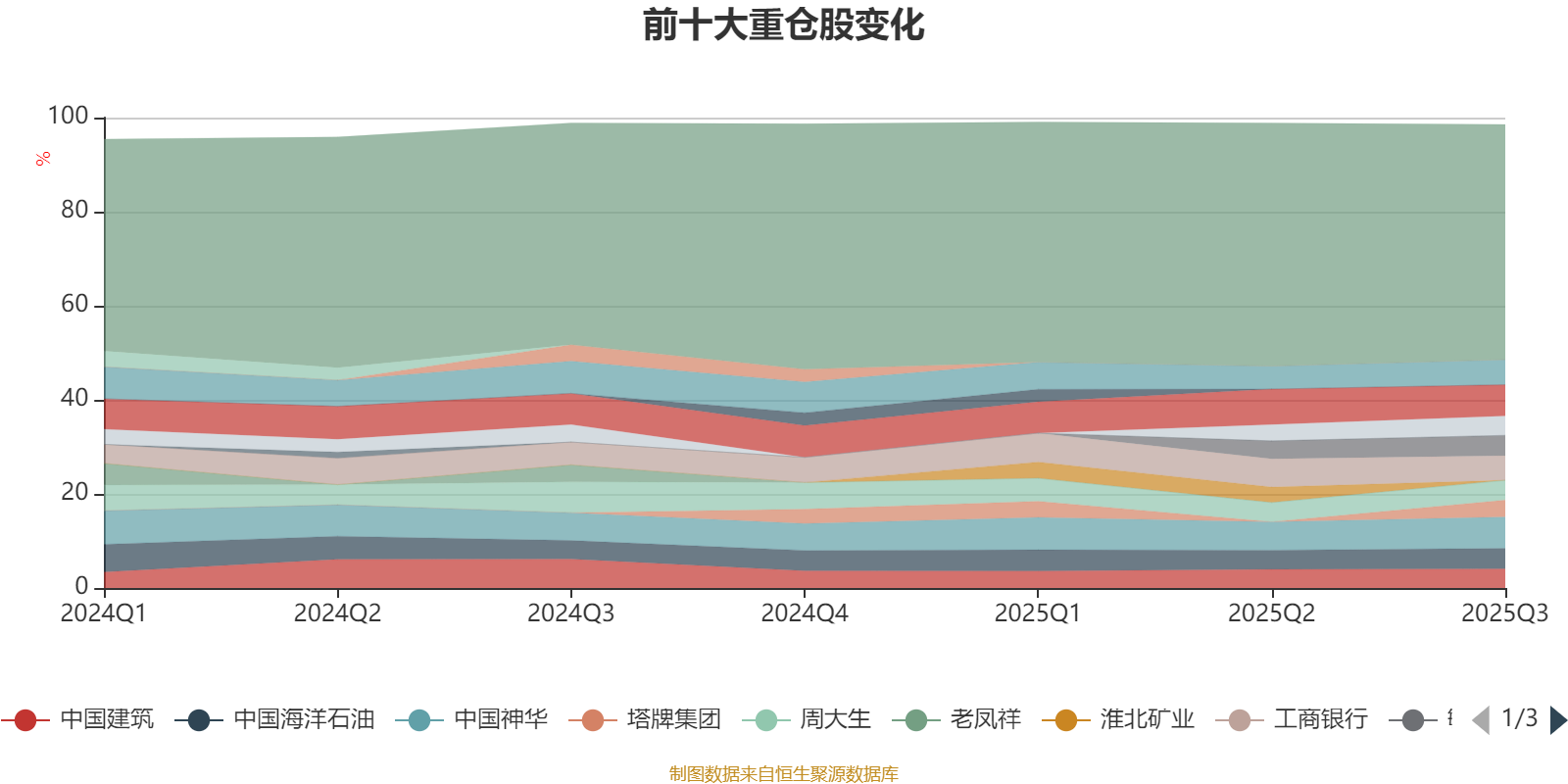 且持股标的较为稳定。截至2025年三季度末,基金十大重仓股分别是中国神华、建设银行、海螺水泥、工商银行、中国海洋石油、敏华控股、周大生、老板电器、中国建筑、塔牌集团。