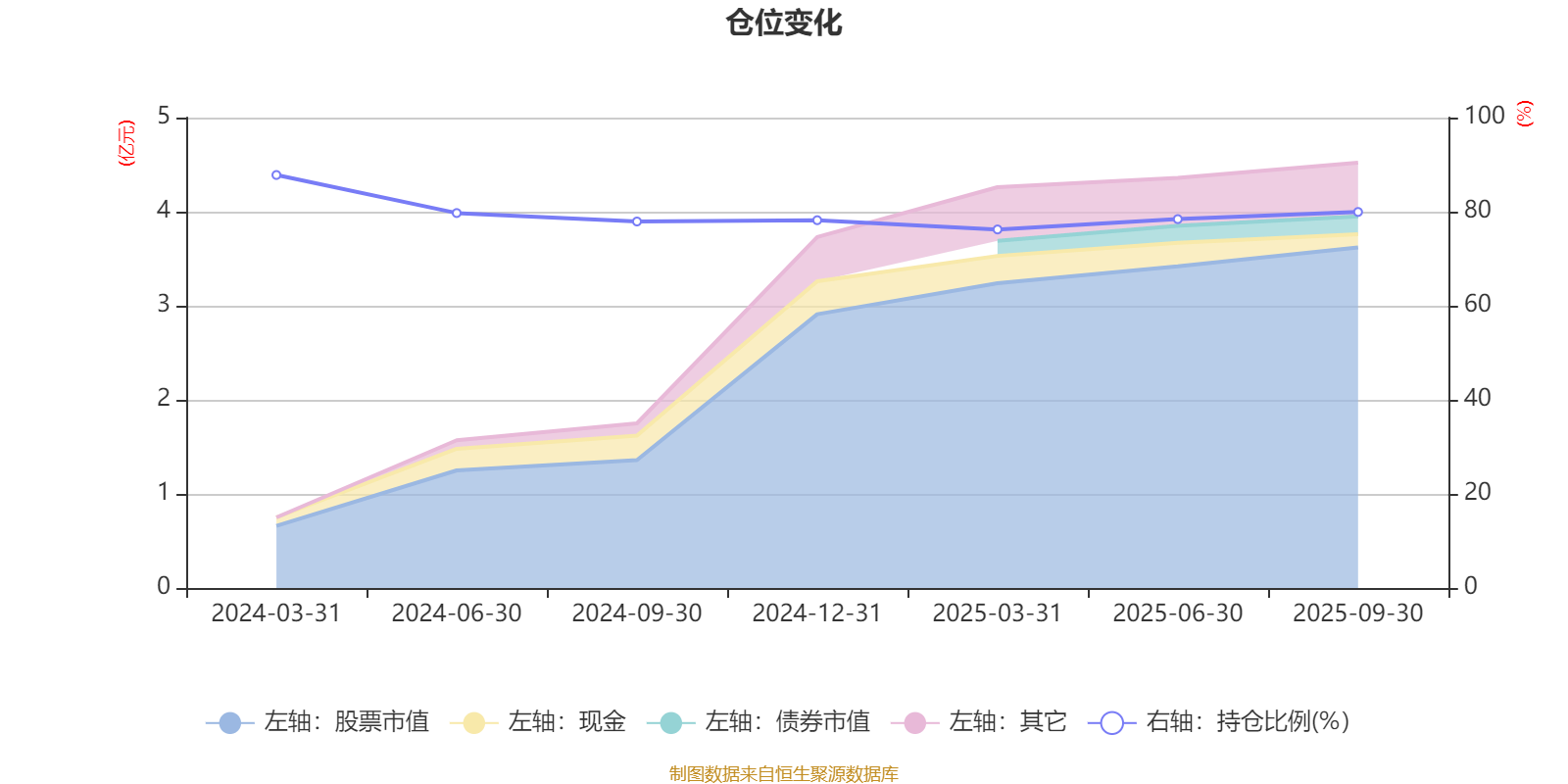 据定期报告数据统计,成立以来平均股票仓位为79.74%,同类平均为85.51%。2024年一季度末基金达到87.8%的最高仓位,2025年一季度末最低,为76.22%。