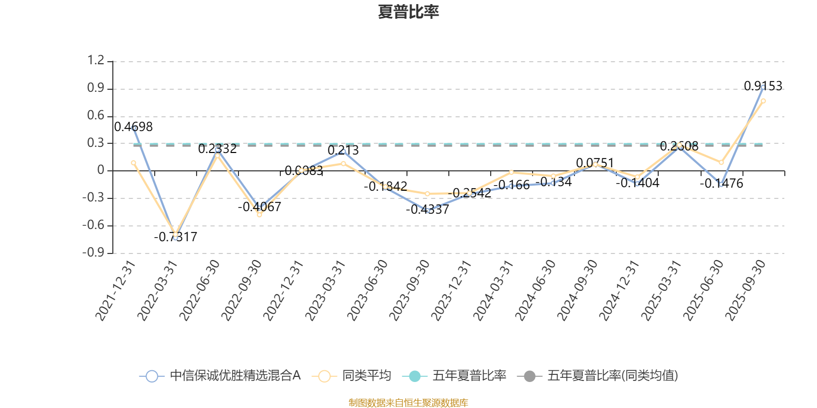 截至9月30日,基金近三年夏普比率为0.2148,位于同类可比基金156/177。
