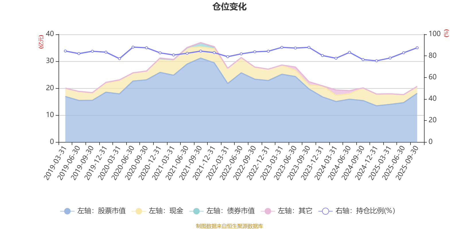 据定期报告数据统计,近三年平均股票仓位为82.47%,同类平均为87.54%。2020年上半年末基金达到88.15%的最高仓位,2024年末最低,为75.47%。