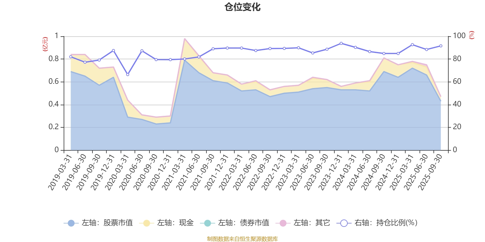 据定期报告数据统计,近三年平均股票仓位为88.88%,同类平均为72.16%。2023年末基金达到93.82%的最高仓位,2020年一季度末最低,为66.41%。