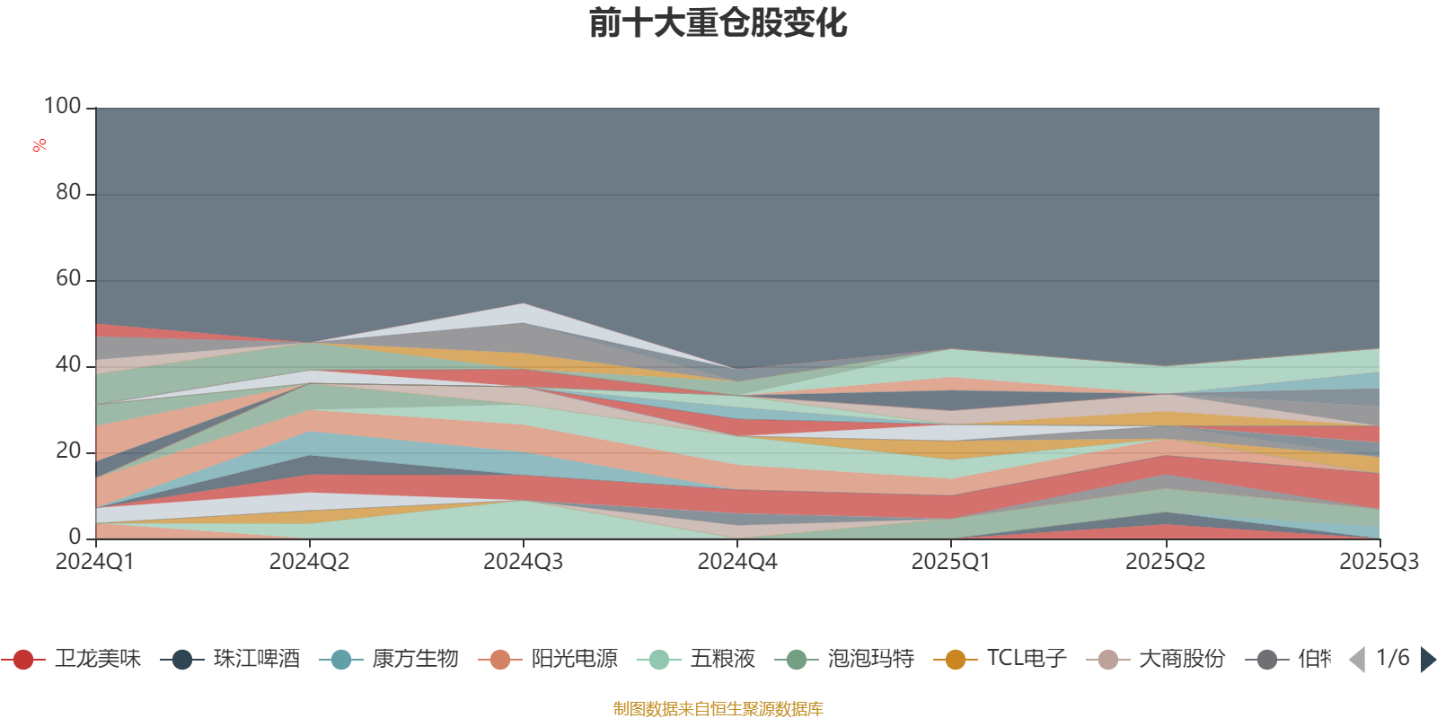 截至2025年三季度末,基金十大重仓股分别是腾讯控股、东鹏饮料、万辰集团、泡泡玛特、中国东方教育、锅圈、小商品城、燕京啤酒、中宠股份、康方生物。