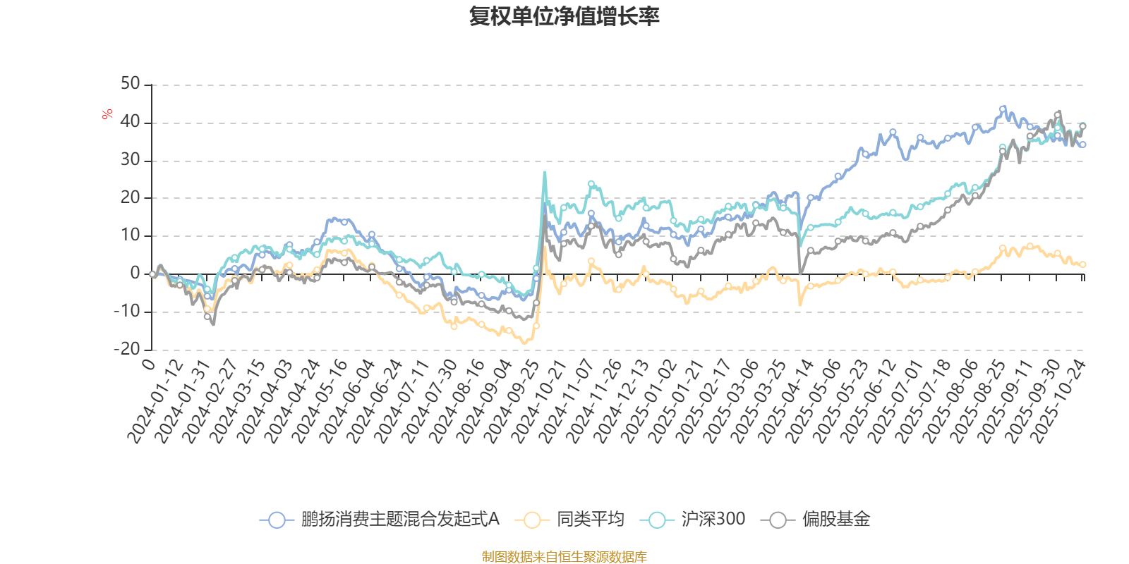 截至10月24日,鹏扬消费主题混合发起式A近三个月复权单位净值增长率为-2.19%,位于同类可比基金66/85;近半年复权单位净值增长率为8.92%,位于同类可比基金23/85;近一年复权单位净值增长率为19.66%,位于同类可比基金9/82。