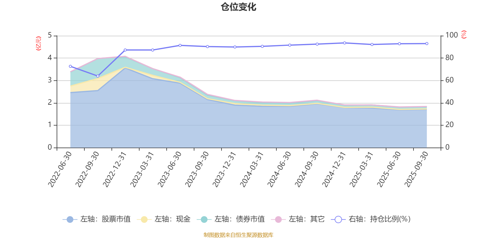 据定期报告数据统计,近三年平均股票仓位为91.01%,同类平均为85.51%。2024年末基金达到93.54%的最高仓位,2022年三季度末最低,为63.97%。