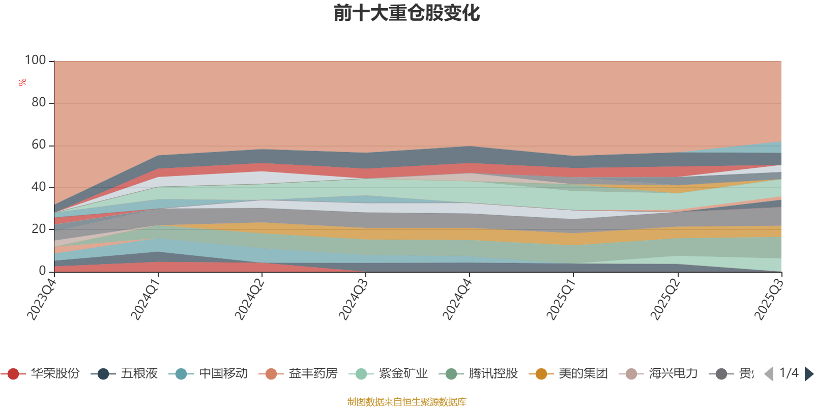 截至2025年三季度末,基金十大重仓股分别是腾讯控股、贵州茅台、中国海洋石油、紫金矿业、宝丰能源、美团-W、美的集团、亚钾国际、新奥能源、华润电力、中国海油。