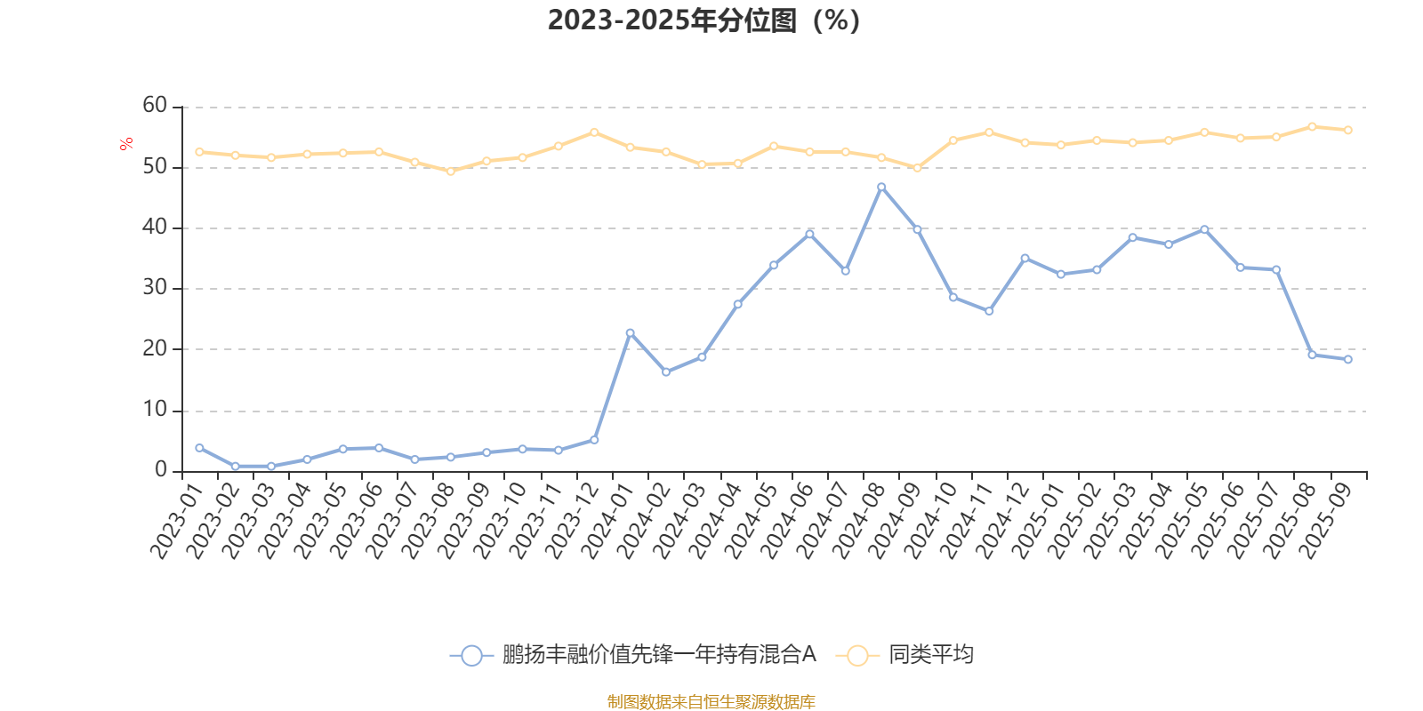 通过所选区间该基金净值增长率分位图,可以观察该基金与同类基金业绩比较情况。图为坐标原点到区间内某时点的净值增长率在同类基金中的分位数。