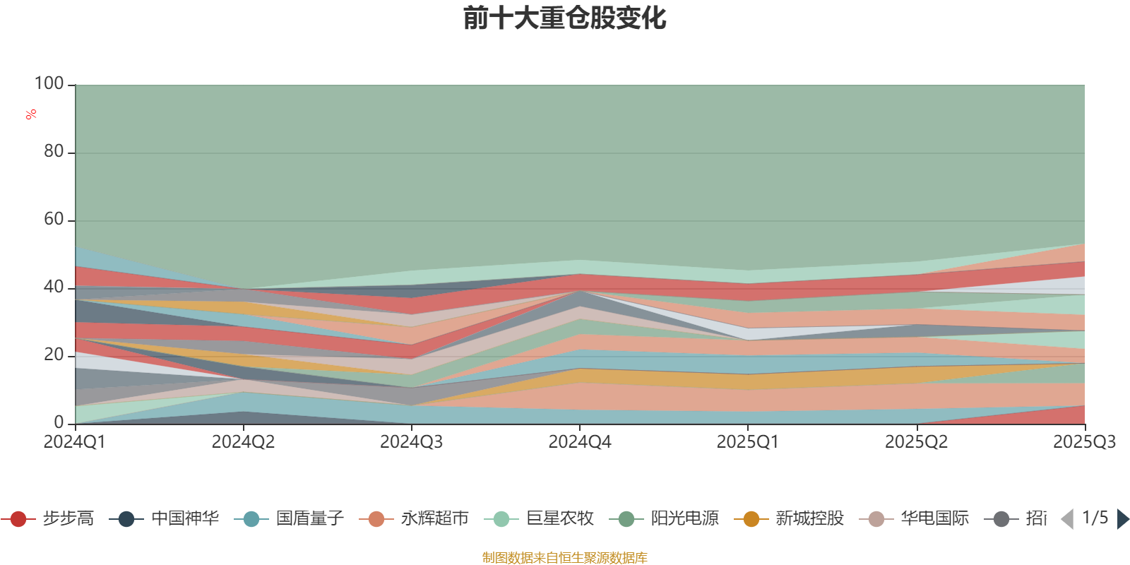 截至2025年三季度末,基金十大重仓股分别是永辉超市、先导智能、阳光电源、步步高、当升科技、天赐材料、信达地产、滨江集团、我爱我家、百润股份。
