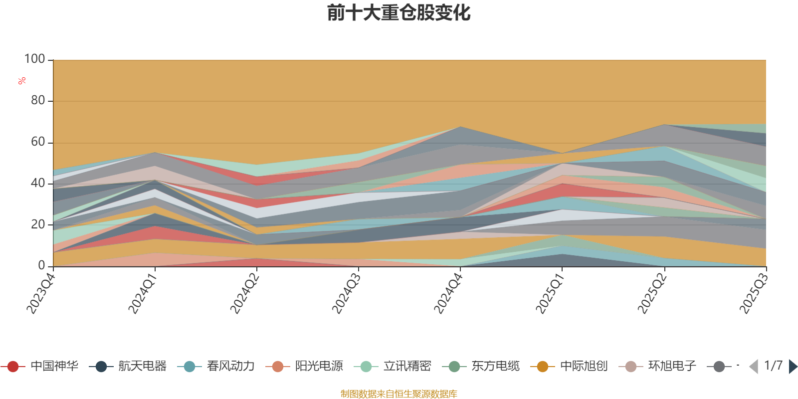 截至2025年三季度末,基金十大重仓股分别是新易盛、一品红、中际旭创、亿纬锂能、沪电股份、华友钴业、中芯国际、天孚通信、ST华通、兆易创新。