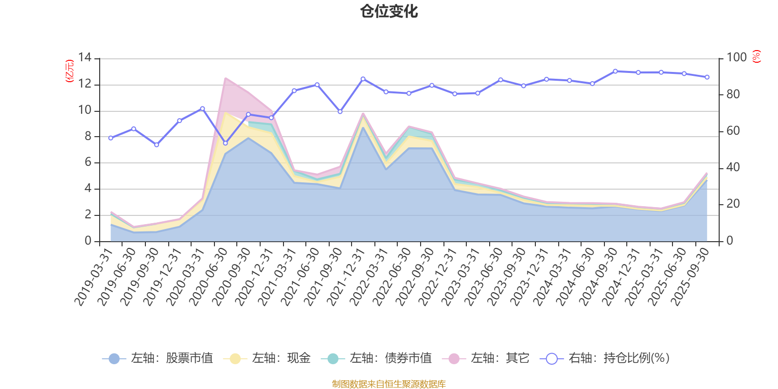据定期报告数据统计,近三年平均股票仓位为88.06%,同类平均为72.16%。2024年三季度末基金达到92.96%的最高仓位,2019年三季度末最低,为52.79%。