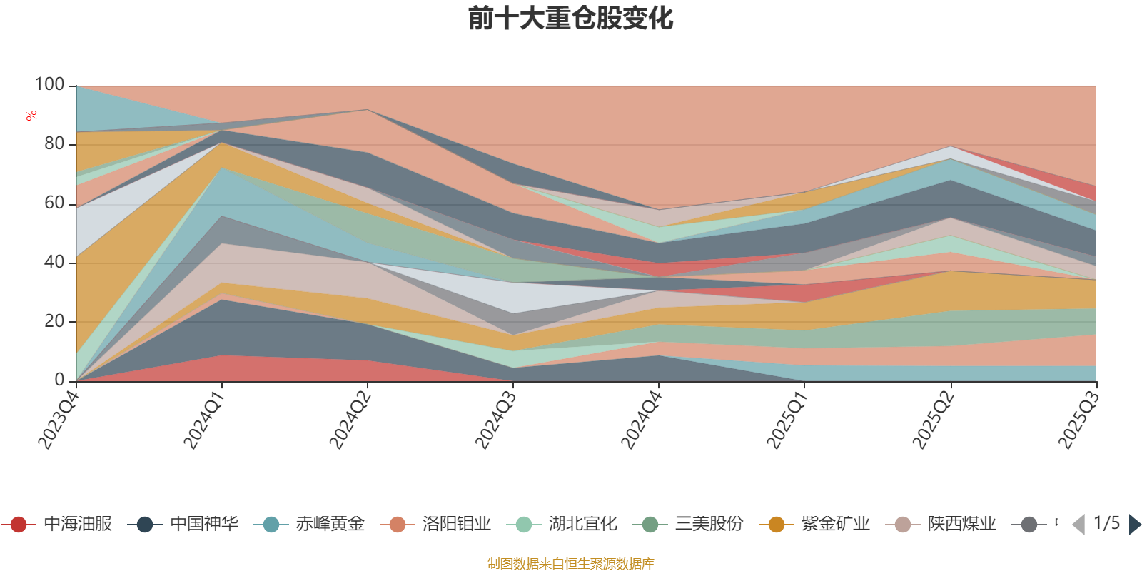 该基金持股集中度较高。截至2025年三季度末,基金十大重仓股分别是洛阳钼业、紫金矿业、巨化股份、三美股份、金诚信、赤峰黄金、鲁西化工、山金国际、山东黄金、华峰化学。