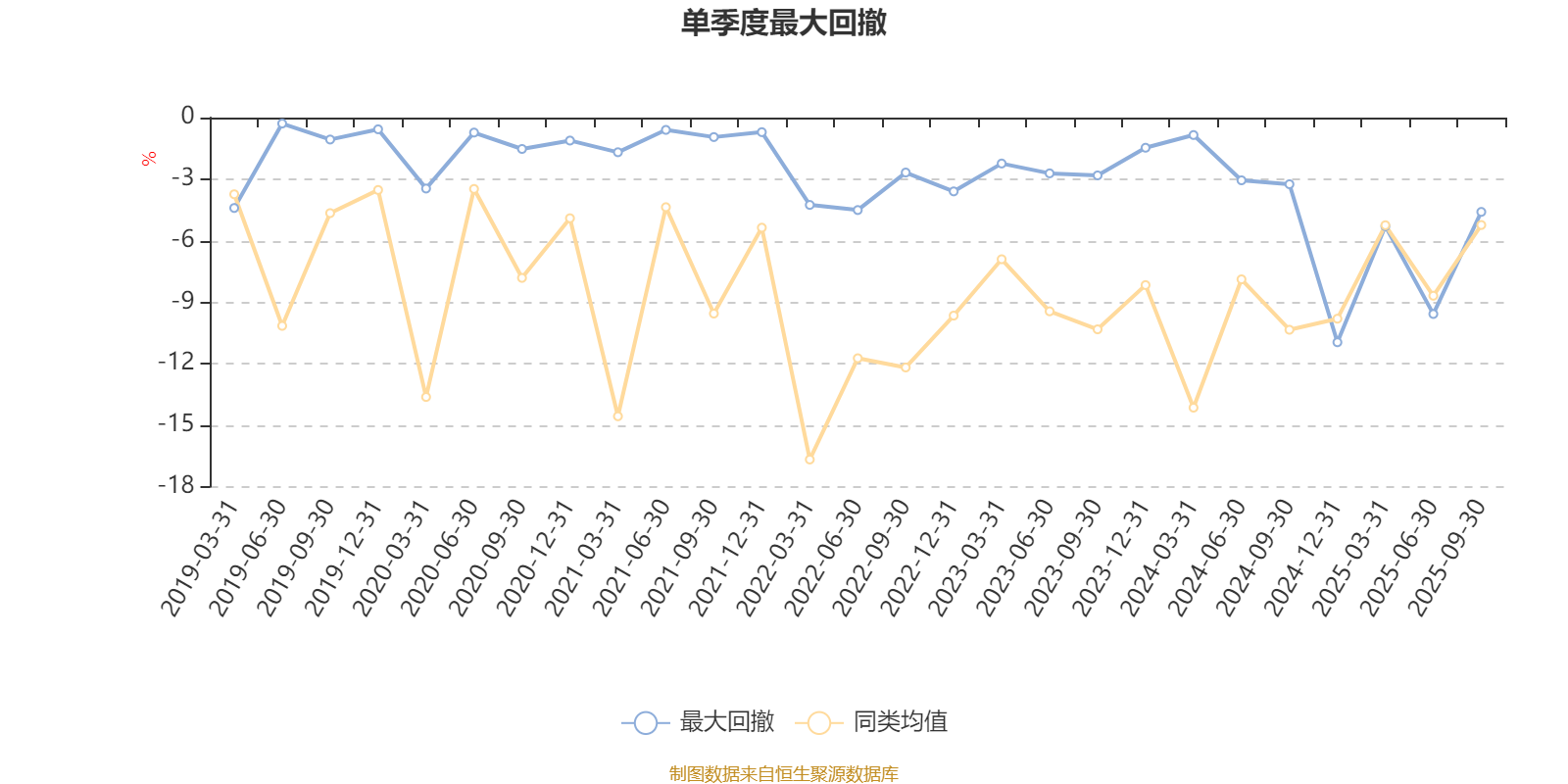 截至10月24日,基金近三年最大回撤为16.69%,同类可比基金排名229/1283。单季度最大回撤出现在2024年四季度,为10.96%。