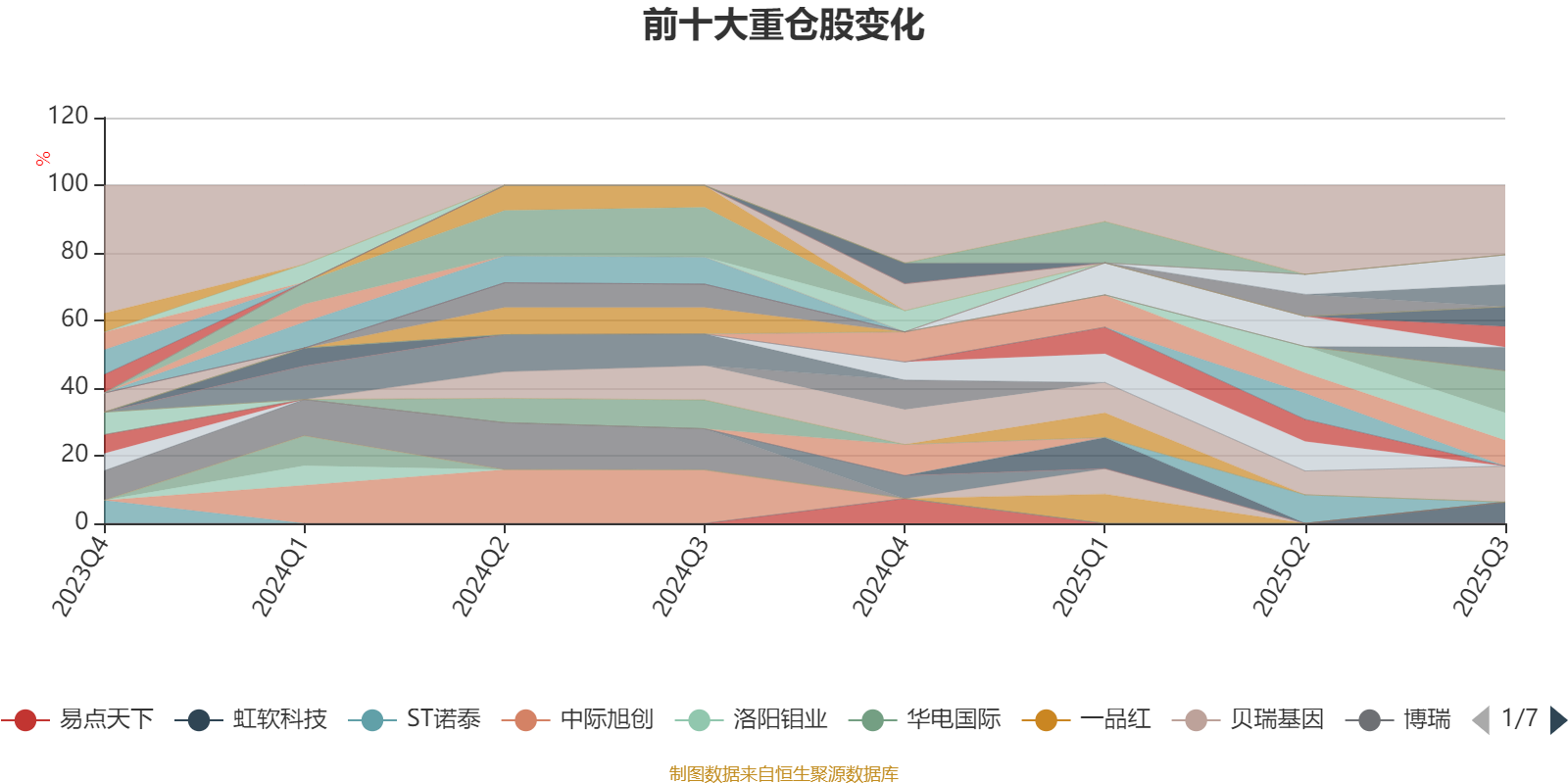 该基金持股集中度较高,近2年前十大重仓股集中度长期超过60%。截至2025年三季度末,基金十大重仓股分别是能科科技、寒武纪、昆仑万维、中旗新材、中芯国际、国能日新、广立微、虹软科技、豆神教育、高新发展。
