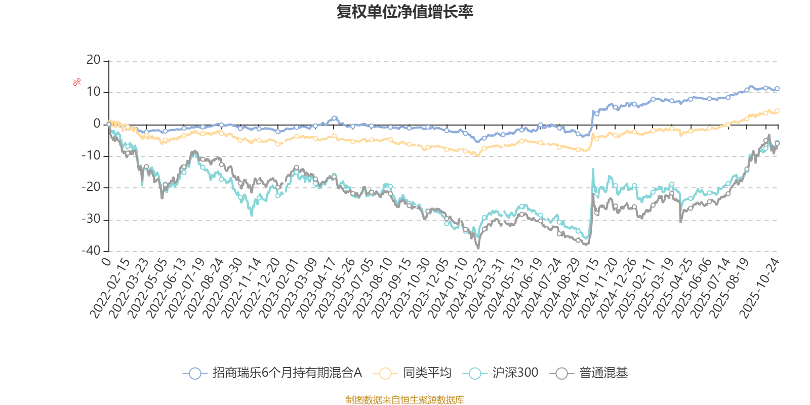 截至10月24日,招商瑞乐6个月持有期混合A近三个月复权单位净值增长率为1.86%,位于同类可比基金349/629;近半年复权单位净值增长率为3.18%,位于同类可比基金476/629;近一年复权单位净值增长率为6.27%,位于同类可比基金374/623;近三年复权单位净值增长率为12.82%,位于同类可比基金221/556。