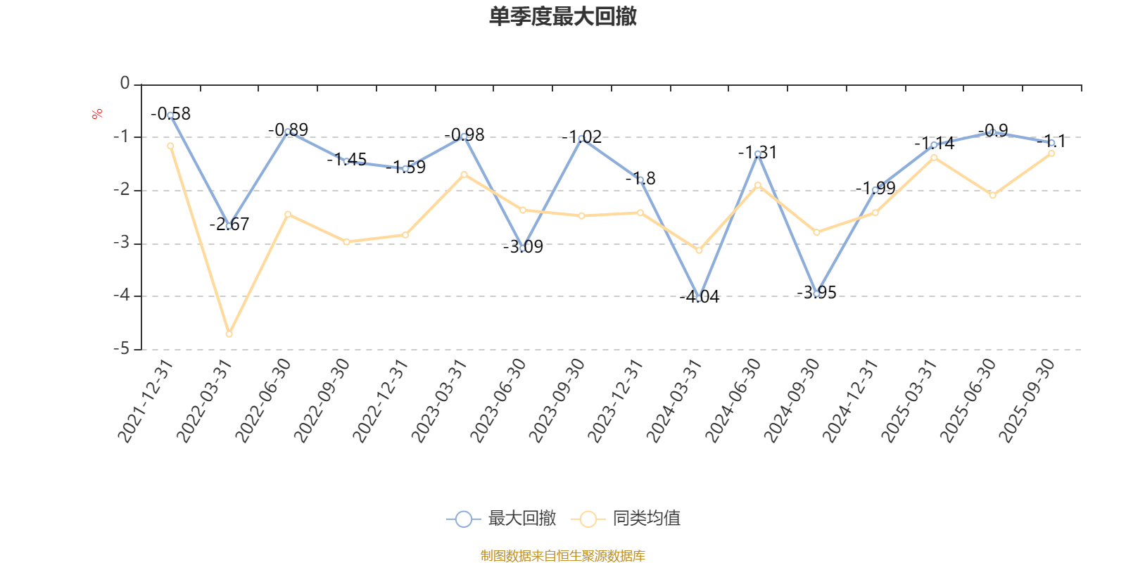 通过所选区间该基金净值增长率分位图,可以观察该基金与同类基金业绩比较情况。图为坐标原点到区间内某时点的净值增长率在同类基金中的分位数。