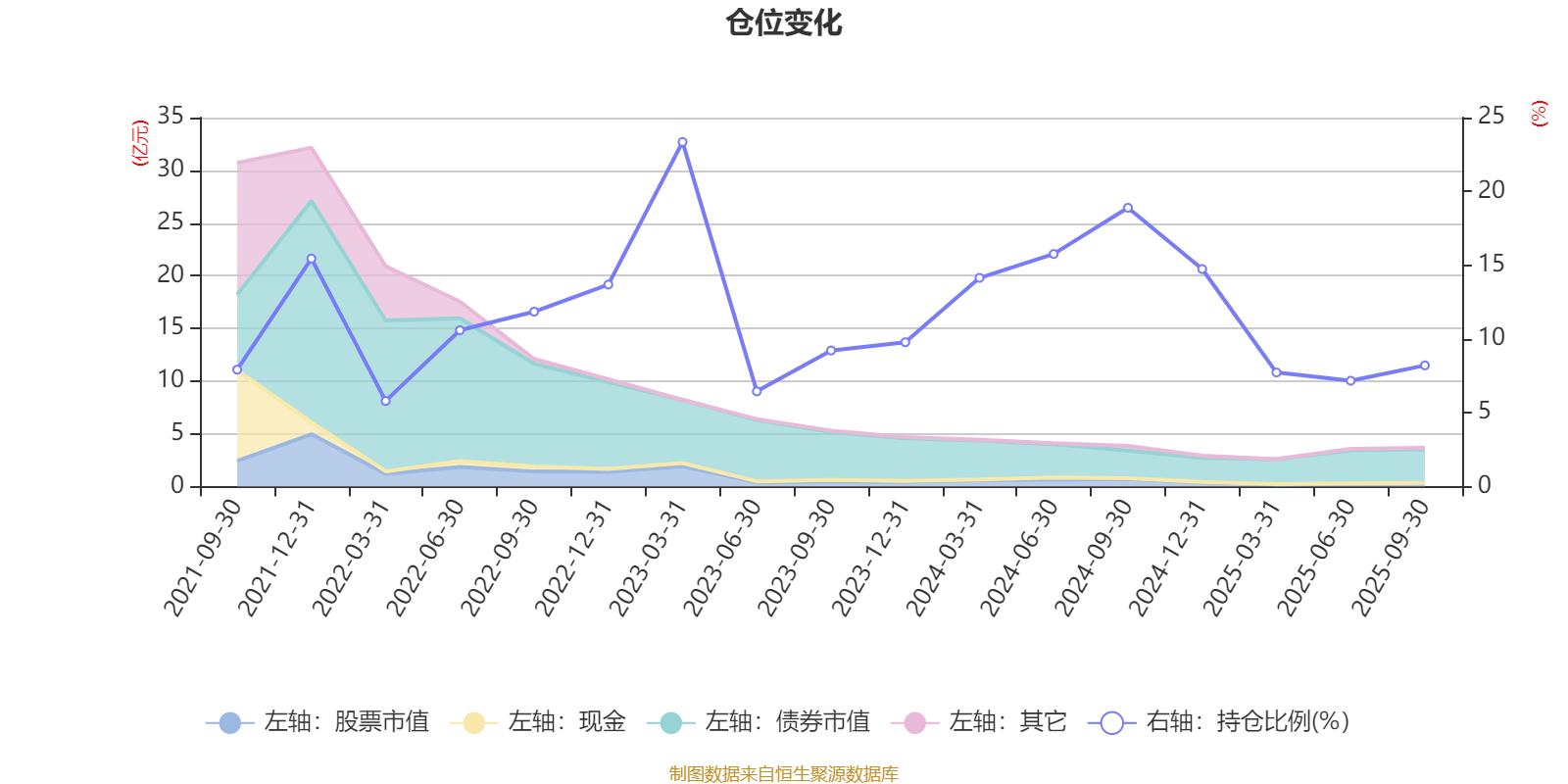 据定期报告数据统计,近三年平均股票仓位为12.43%,同类平均为19.03%。2023年一季度末基金达到23.35%的最高仓位,2022年一季度末最低,为5.8%。