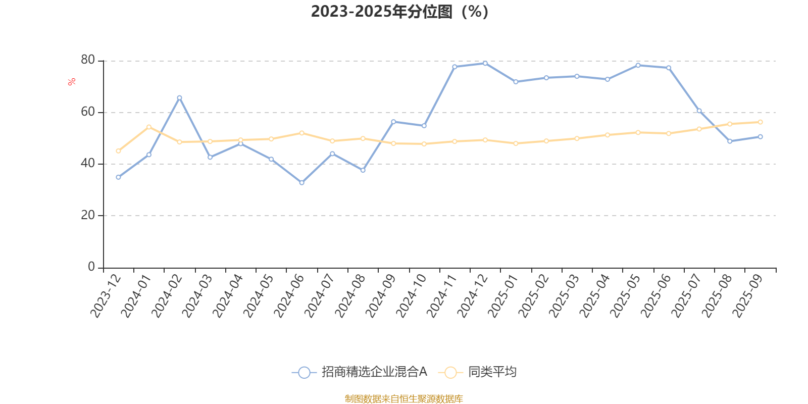 通过所选区间该基金净值增长率分位图,可以观察该基金与同类基金业绩比较情况。图为坐标原点到区间内某时点的净值增长率在同类基金中的分位数。