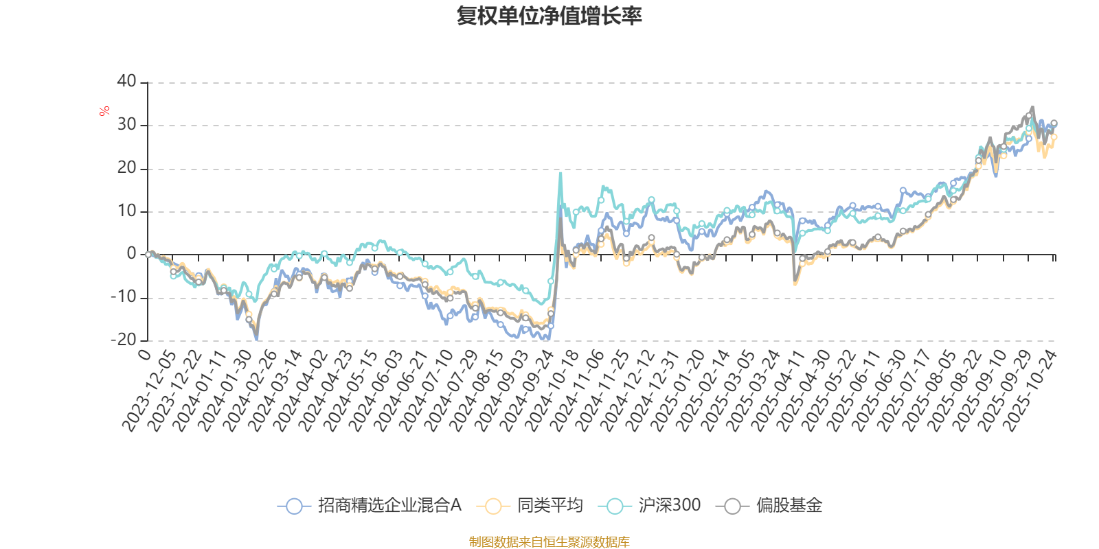 截至10月24日,招商精选企业混合A近三个月复权单位净值增长率为12.25%,位于同类可比基金359/689;近半年复权单位净值增长率为22.83%,位于同类可比基金401/688;近一年复权单位净值增长率为28.27%,位于同类可比基金301/653。