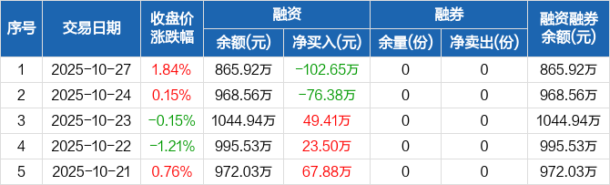 畜牧ETF:融资净偿还102.65万元,融资余额865.92万元(10-27)