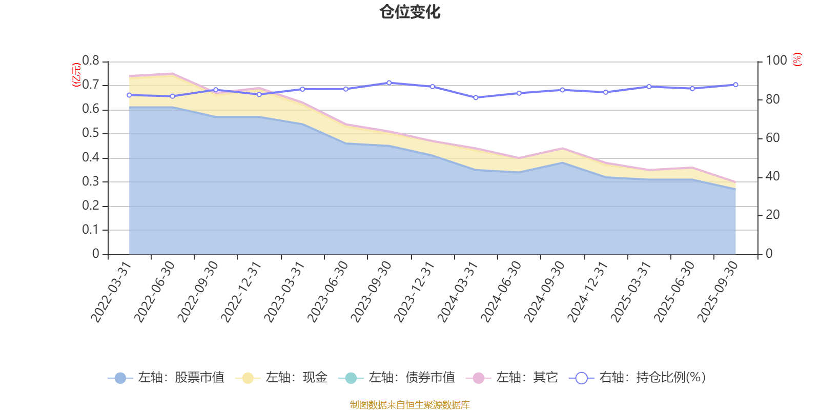 据定期报告数据统计,近三年平均股票仓位为85.45%,同类平均为83.5%。2023年三季度末基金达到88.97%的最高仓位,2024年一季度末最低,为81.31%。