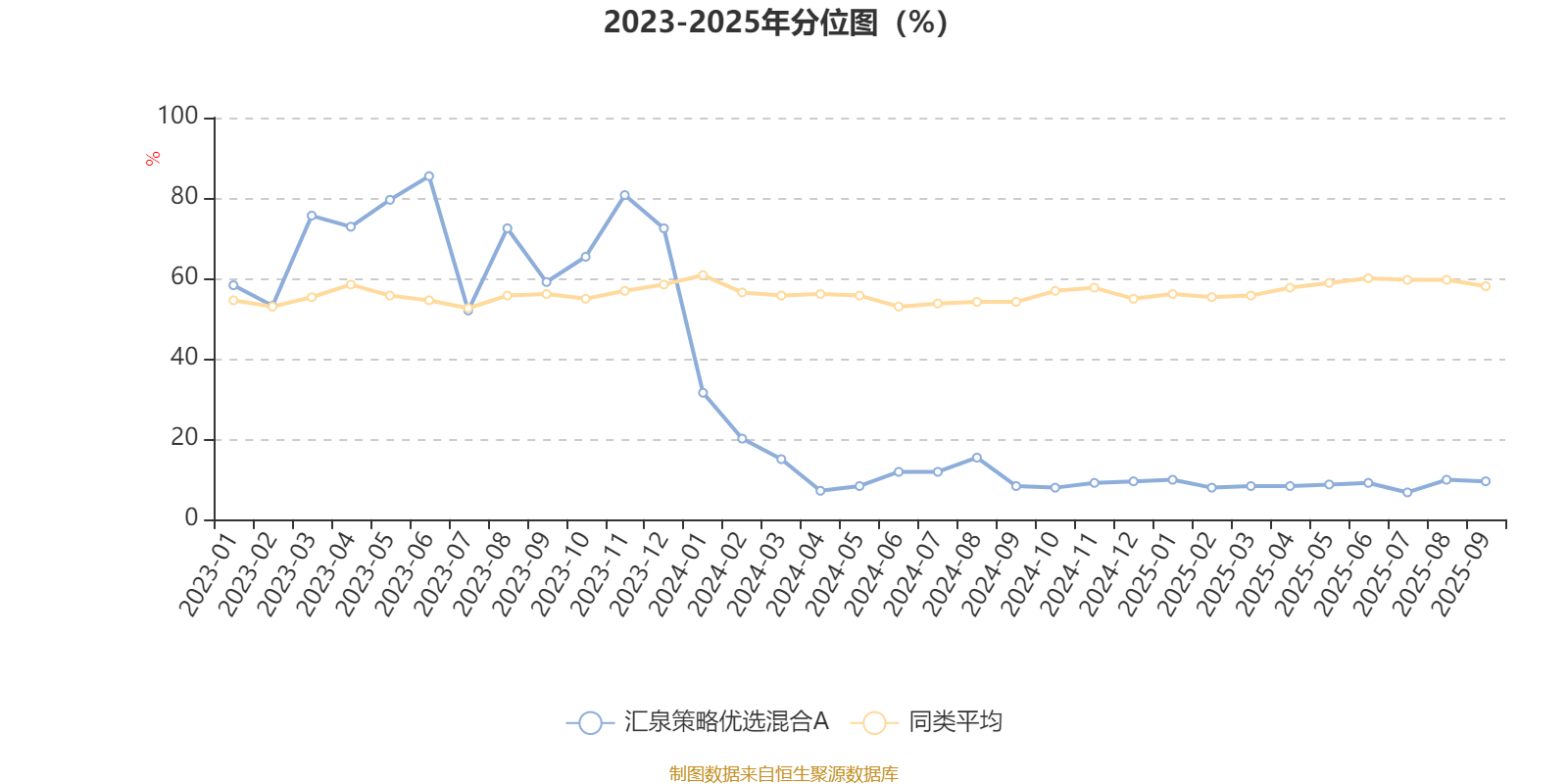 通过所选区间该基金净值增长率分位图,可以观察该基金与同类基金业绩比较情况。图为坐标原点到区间内某时点的净值增长率在同类基金中的分位数。