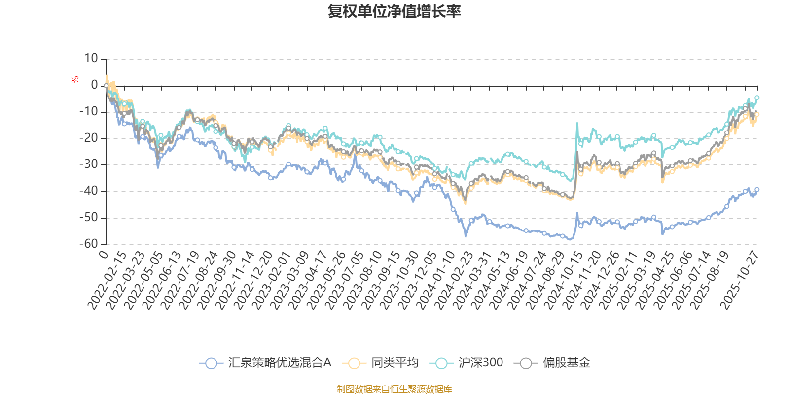 截至10月27日,汇泉策略优选混合A近三个月复权单位净值增长率为17.45%,位于同类可比基金110/265;近半年复权单位净值增长率为30.16%,位于同类可比基金121/265;近一年复权单位净值增长率为24.86%,位于同类可比基金152/265;近三年复权单位净值增长率为-11.98%,位于同类可比基金239/253。