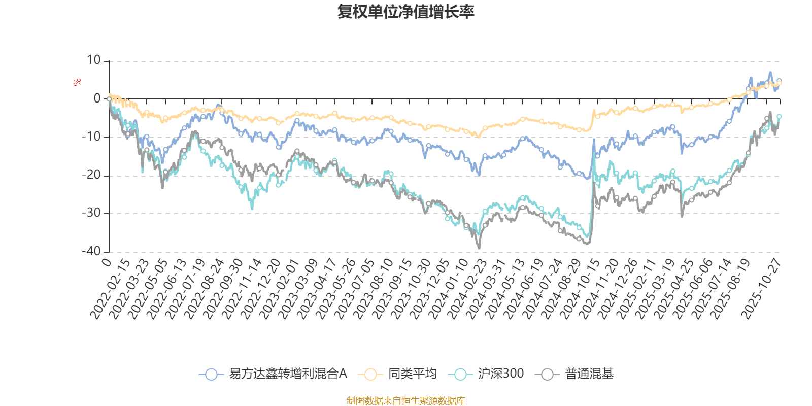 截至10月27日,易方达鑫转增利混合A近三个月复权单位净值增长率为7.05%,位于同类可比基金54/629;近半年复权单位净值增长率为19.02%,位于同类可比基金18/629;近一年复权单位净值增长率为19.84%,位于同类可比基金23/623;近三年复权单位净值增长率为16.21%,位于同类可比基金133/557。
