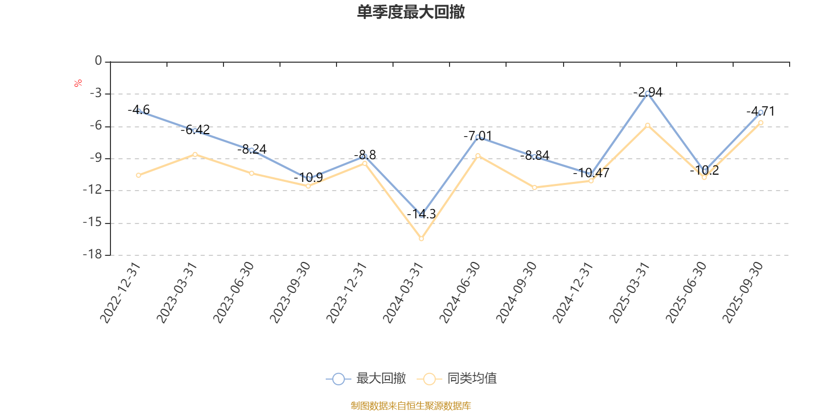 截至10月27日,基金近三年最大回撤为32.16%,同类可比基金排名172/513。单季度最大回撤出现在2024年一季度,为14.3%。