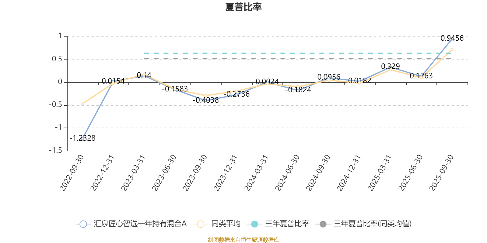 截至9月30日,基金近三年夏普比率为0.633,位于同类可比基金179/518。