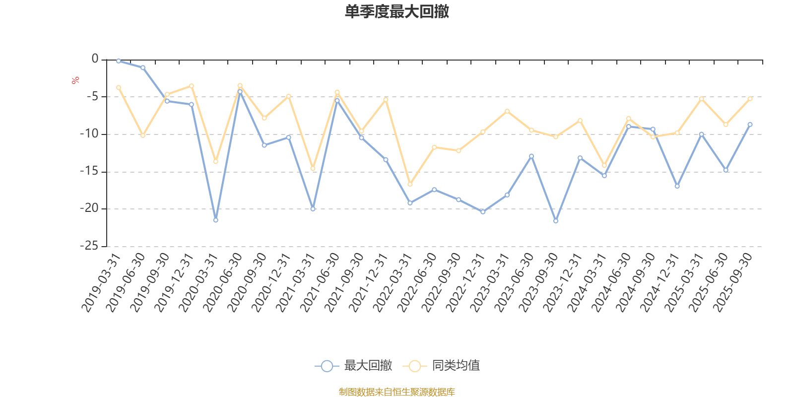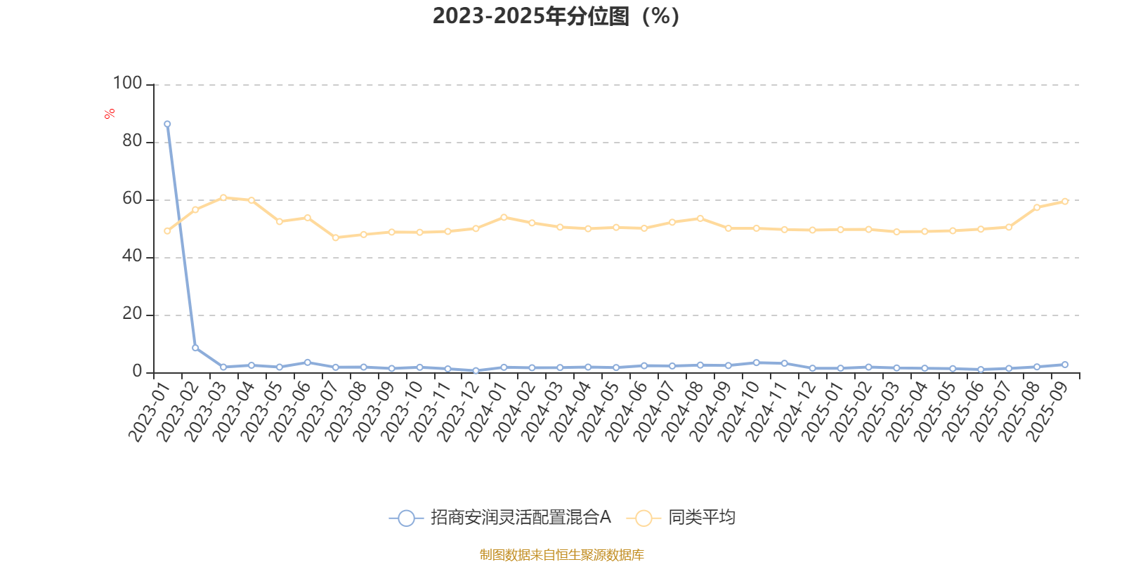 通过所选区间该基金净值增长率分位图,可以观察该基金与同类基金业绩比较情况。图为坐标原点到区间内某时点的净值增长率在同类基金中的分位数。