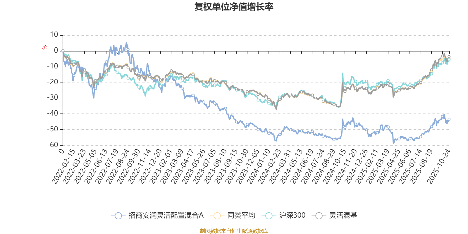 截至10月24日,招商安润灵活配置混合A近三个月复权单位净值增长率为19.81%,位于同类可比基金364/1287;近半年复权单位净值增长率为28.13%,位于同类可比基金484/1287;近一年复权单位净值增长率为6.66%,位于同类可比基金1070/1287;近三年复权单位净值增长率为-32.50%,位于同类可比基金1264/1286。