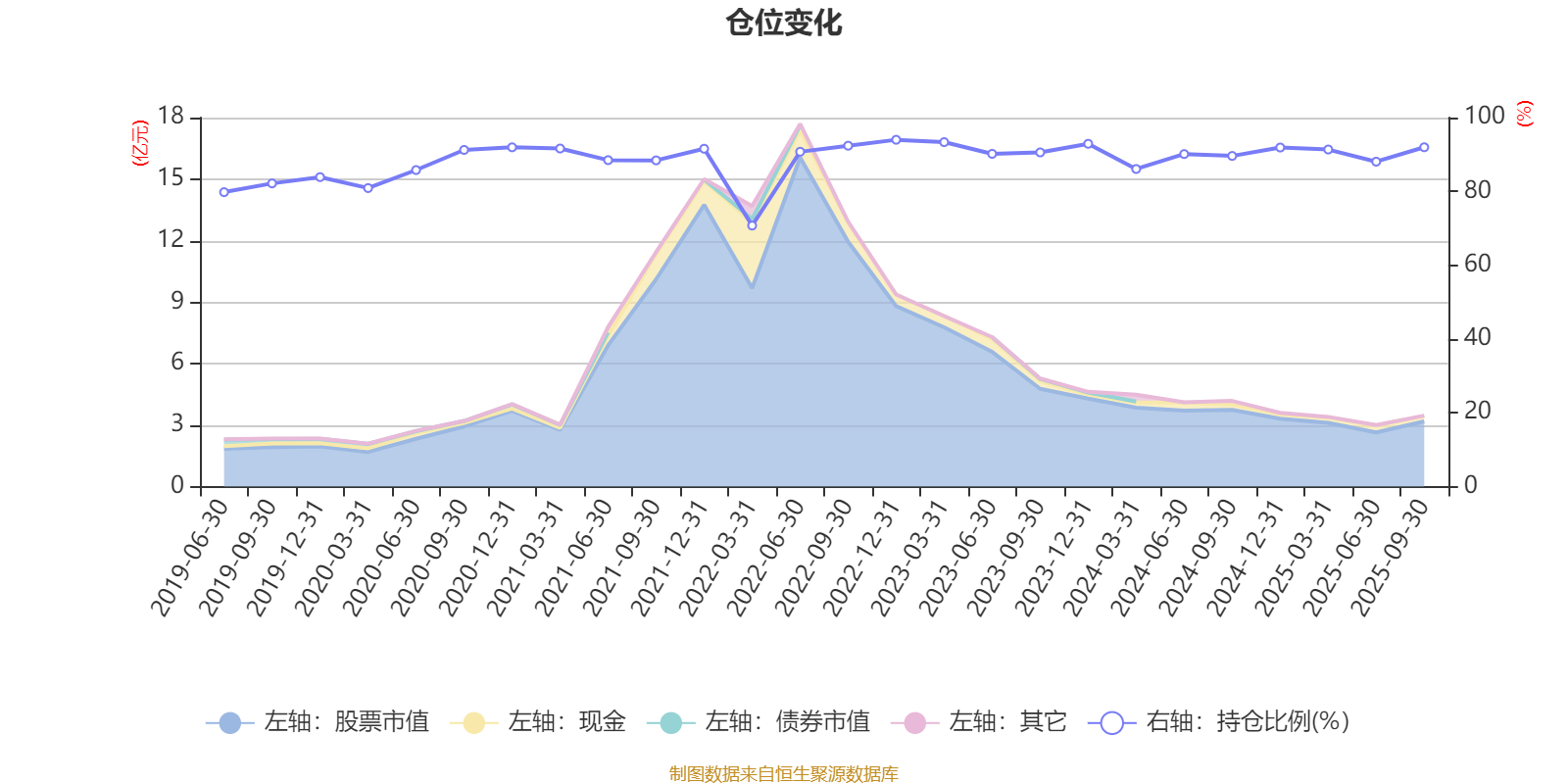 据定期报告数据统计,近三年平均股票仓位为90.84%,同类平均为72.16%。2022年末基金达到93.99%的最高仓位,2022年一季度末最低,为70.74%。