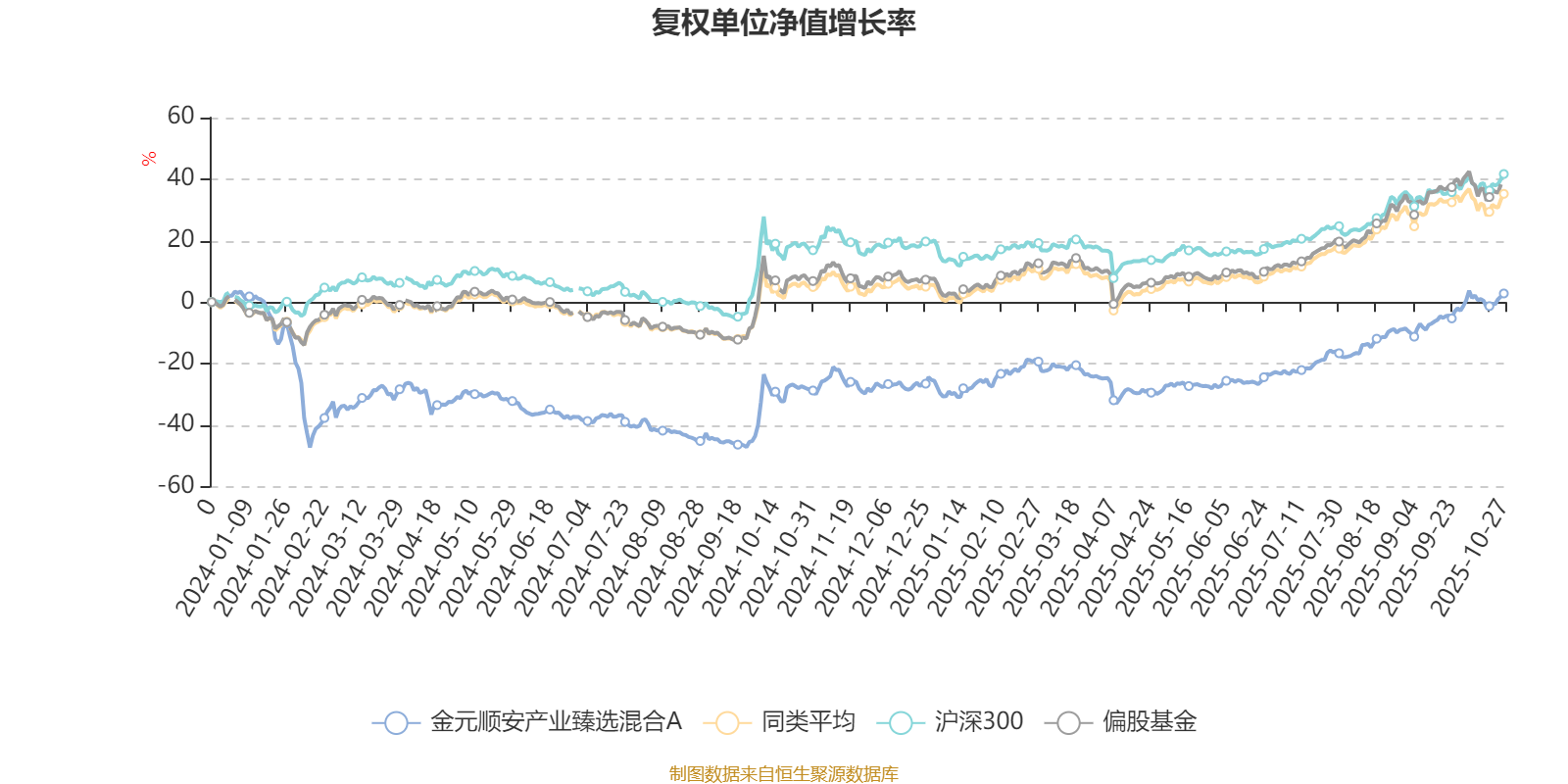 截至10月27日,金元顺安产业臻选混合A近三个月复权单位净值增长率为21.97%,位于同类可比基金185/689;近半年复权单位净值增长率为45.09%,位于同类可比基金112/688;近一年复权单位净值增长率为41.58%,位于同类可比基金144/653。