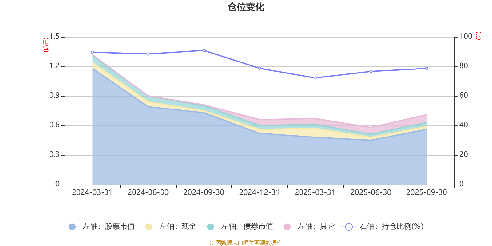 据定期报告数据统计,成立以来平均股票仓位为82.15%,同类平均为83.5%。2024年三季度末基金达到90.88%的最高仓位,2025年一季度末最低,为72.19%。