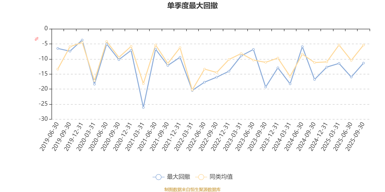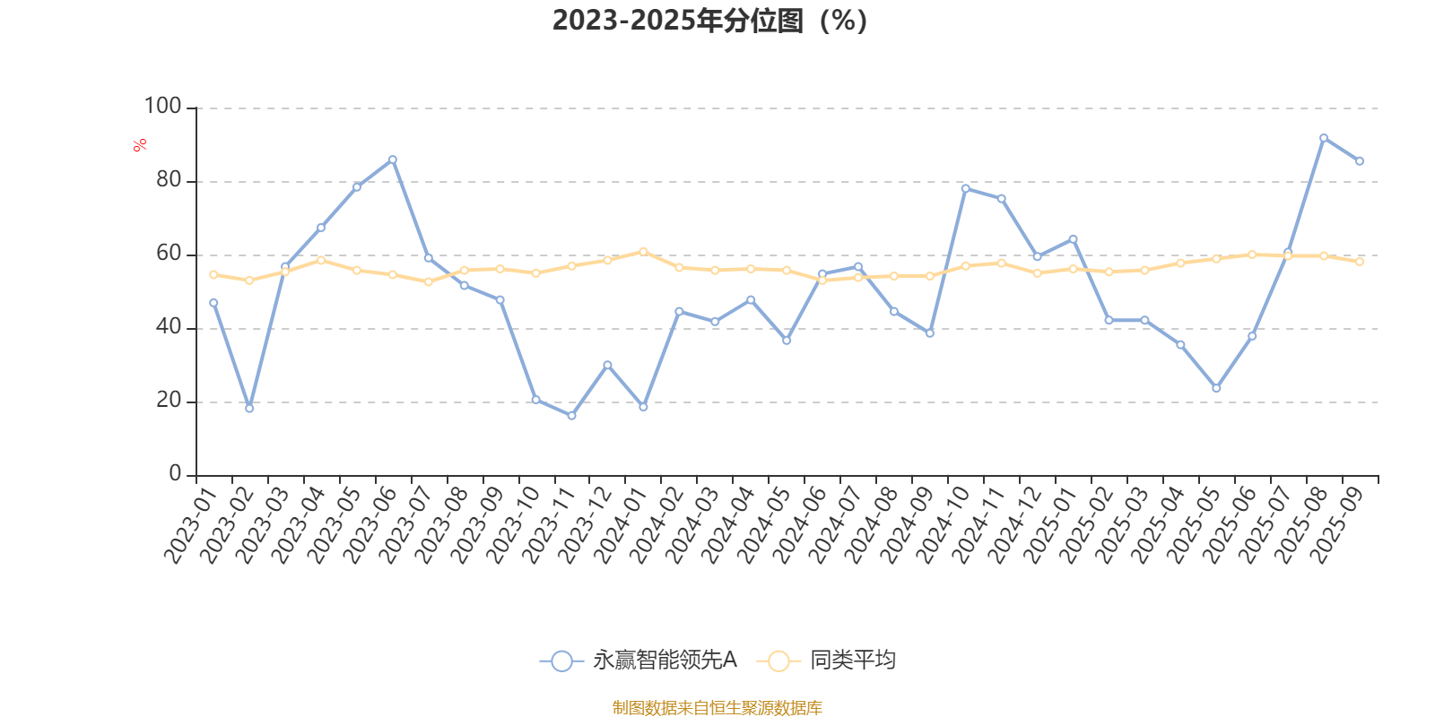 通过所选区间该基金净值增长率分位图,可以观察该基金与同类基金业绩比较情况。图为坐标原点到区间内某时点的净值增长率在同类基金中的分位数。