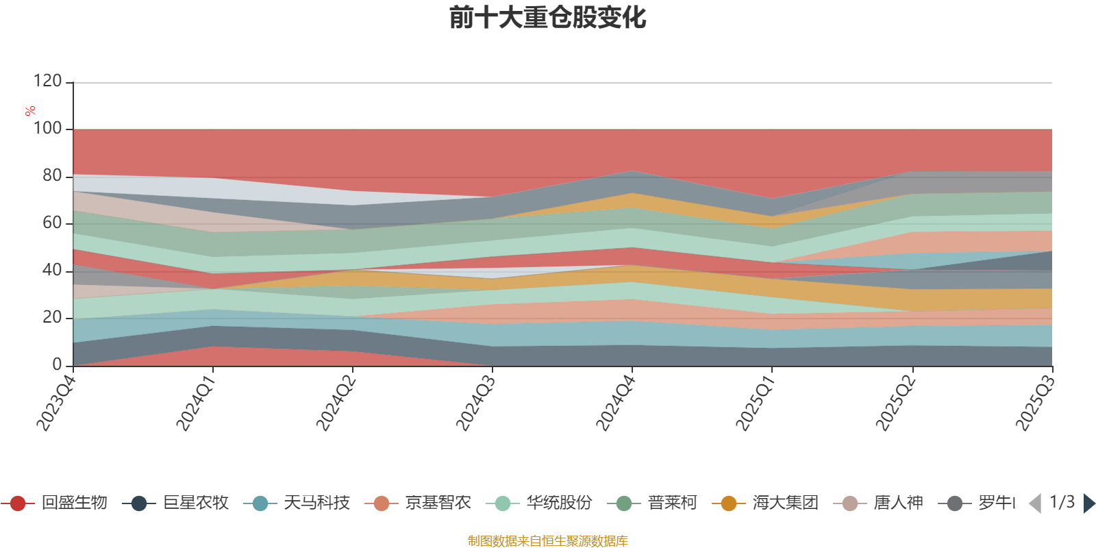 该基金持股集中度较高,近2年前十大重仓股集中度长期超过60%。截至2025年三季度末,基金十大重仓股分别是天马科技、牧原股份、优然牧业、德康农牧、现代牧业、海大集团、巨星农牧、中宠股份、立华股份、京基智农。
