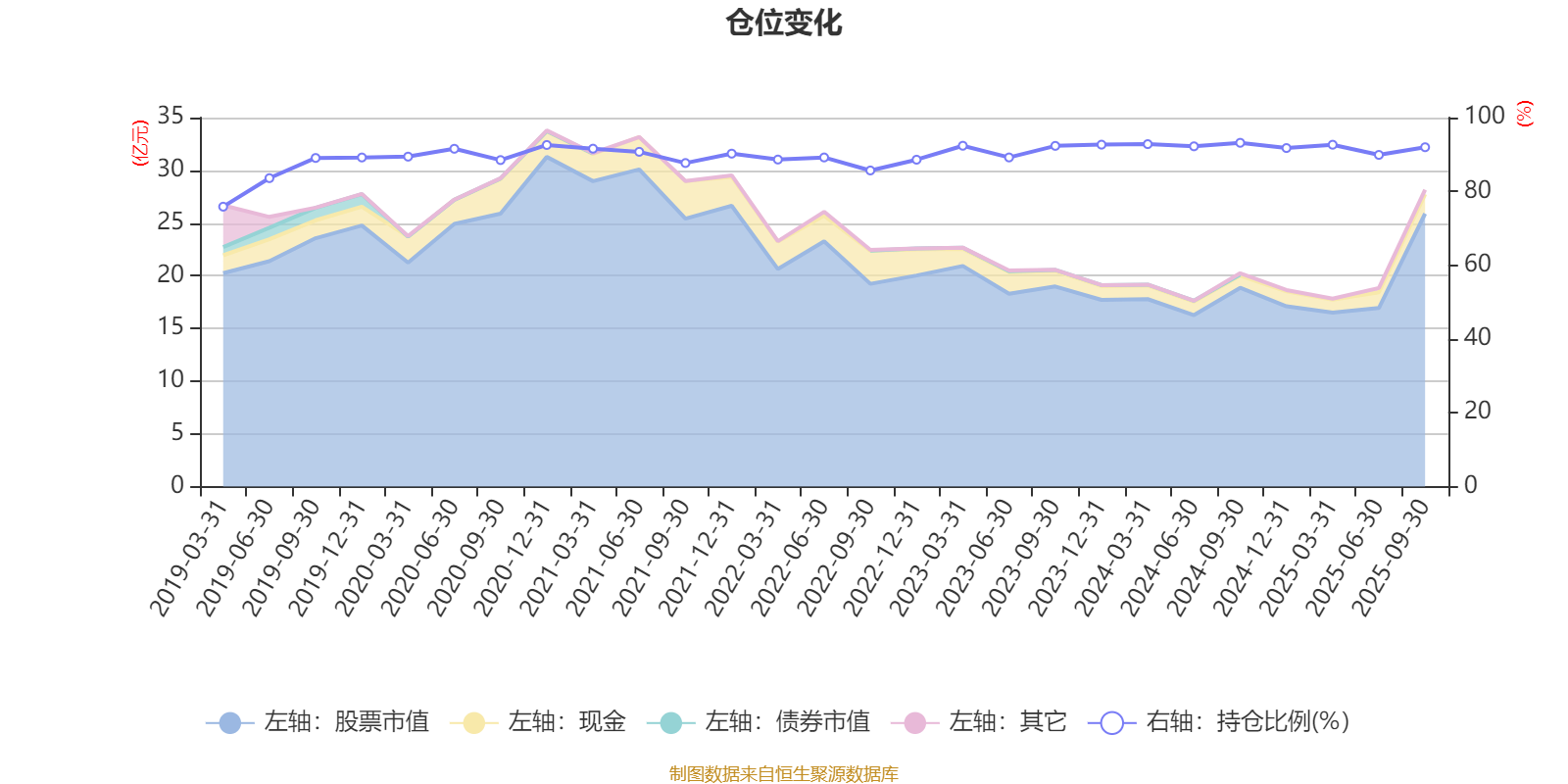 据定期报告数据统计,近三年平均股票仓位为91.64%,同类平均为72.14%。2024年三季度末基金达到93.17%的最高仓位,2019年一季度末最低,为75.86%。