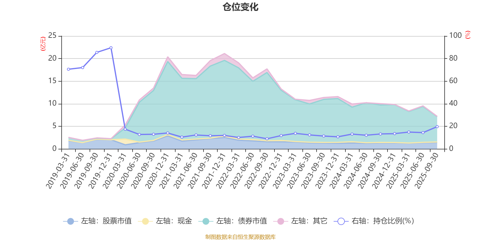 据定期报告数据统计,近三年平均股票仓位为13.47%,同类平均为72.14%。2019年末基金达到89.61%的最高仓位,2022年三季度末最低,为9.01%。