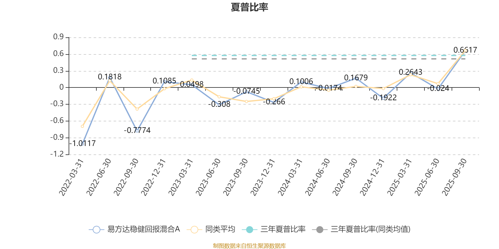 截至9月30日,基金近三年夏普比率为0.575,位于同类可比基金57/119。