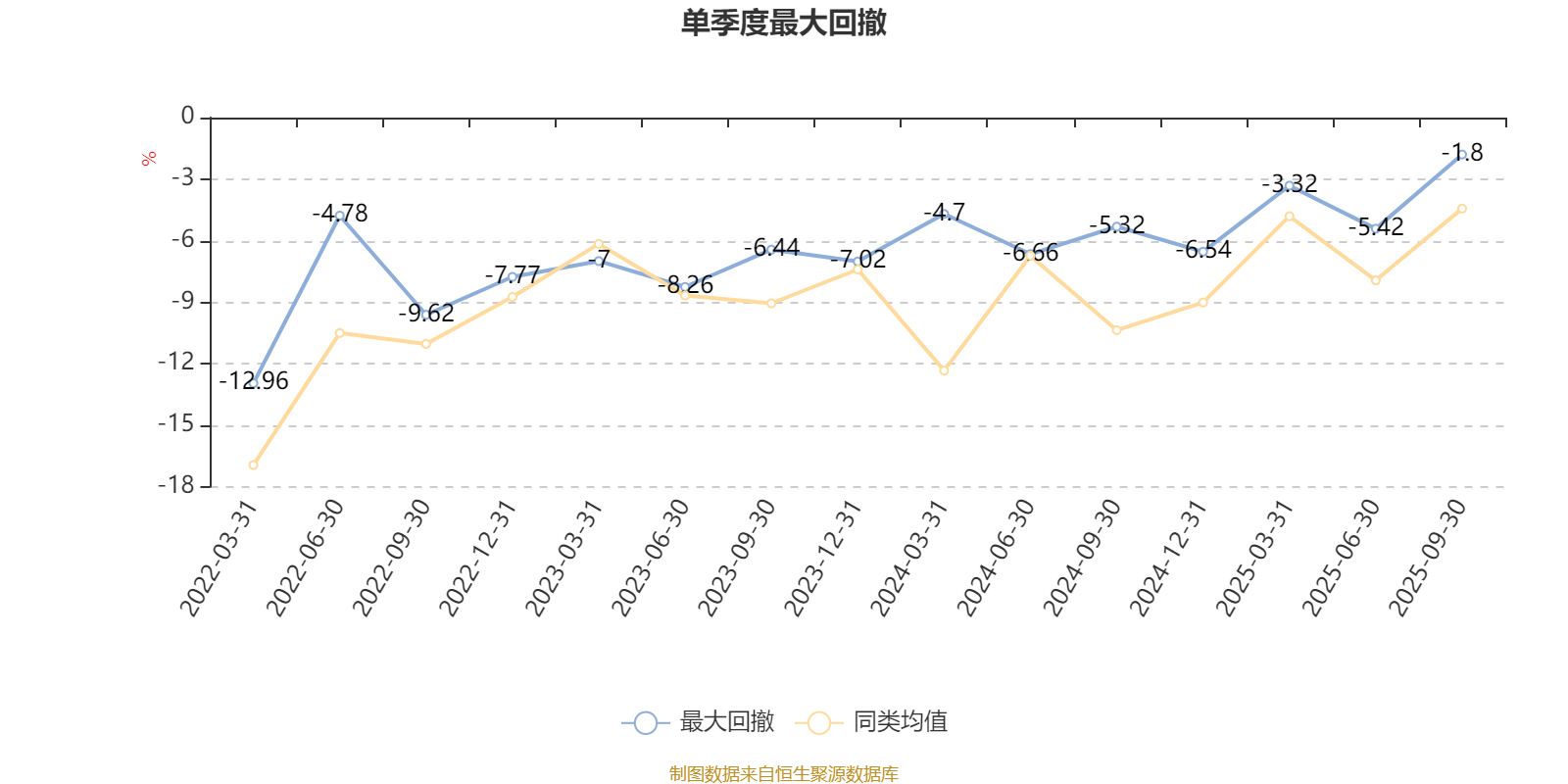 截至10月27日,基金近三年最大回撤为18.2%,同类可比基金排名25/116。单季度最大回撤出现在2022年一季度,为12.96%。