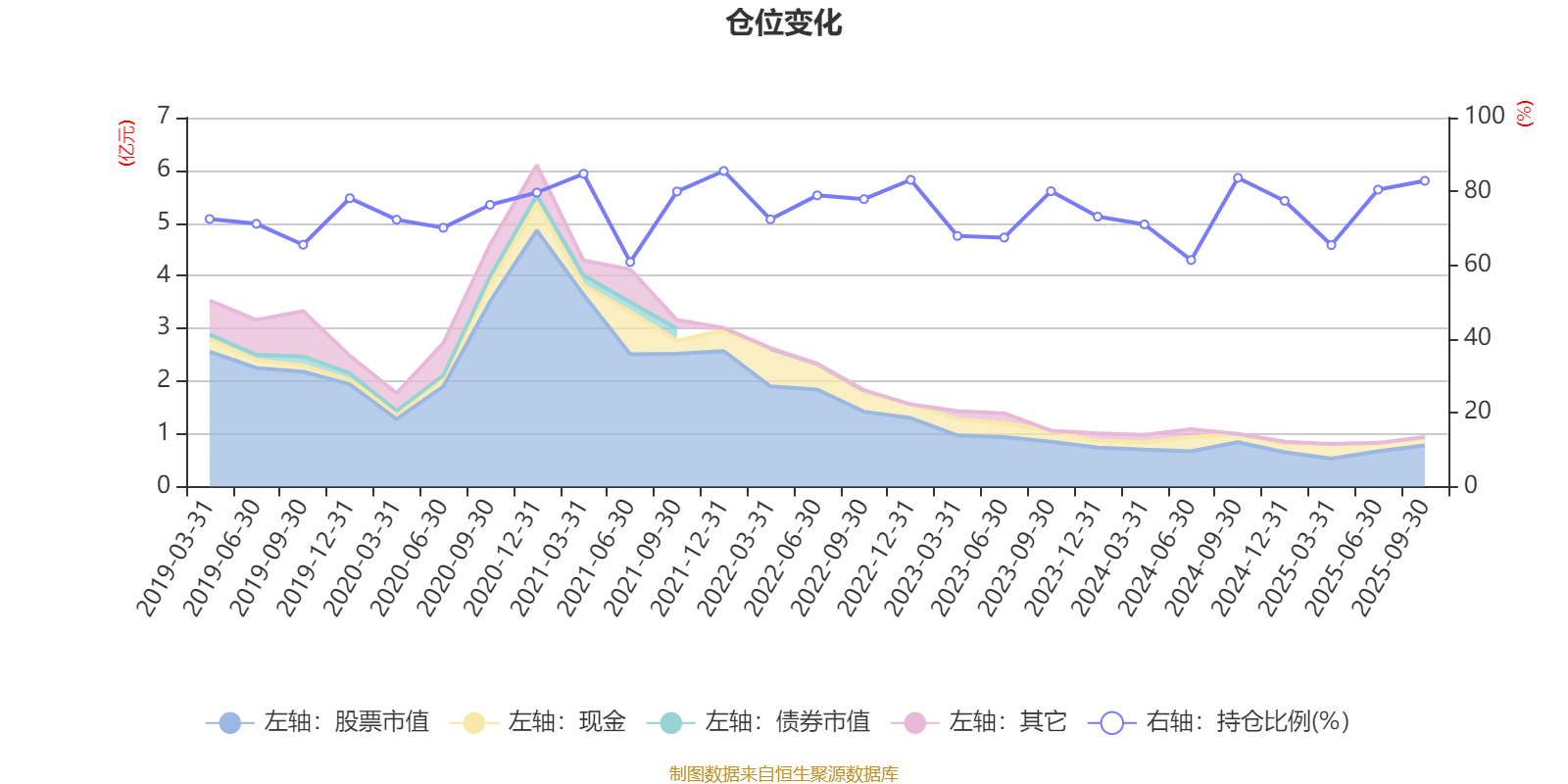 据定期报告数据统计,近三年平均股票仓位为74.51%,同类平均为83.54%。2021年末基金达到85.53%的最高仓位,2021年上半年末最低,为60.86%。