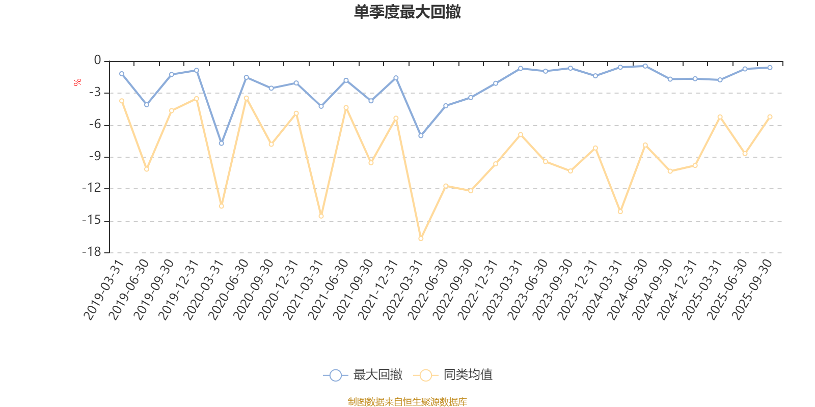 截至10月27日,基金近三年最大回撤为2.08%,同类可比基金排名21/1265。单季度最大回撤出现在2020年一季度,为7.73%。