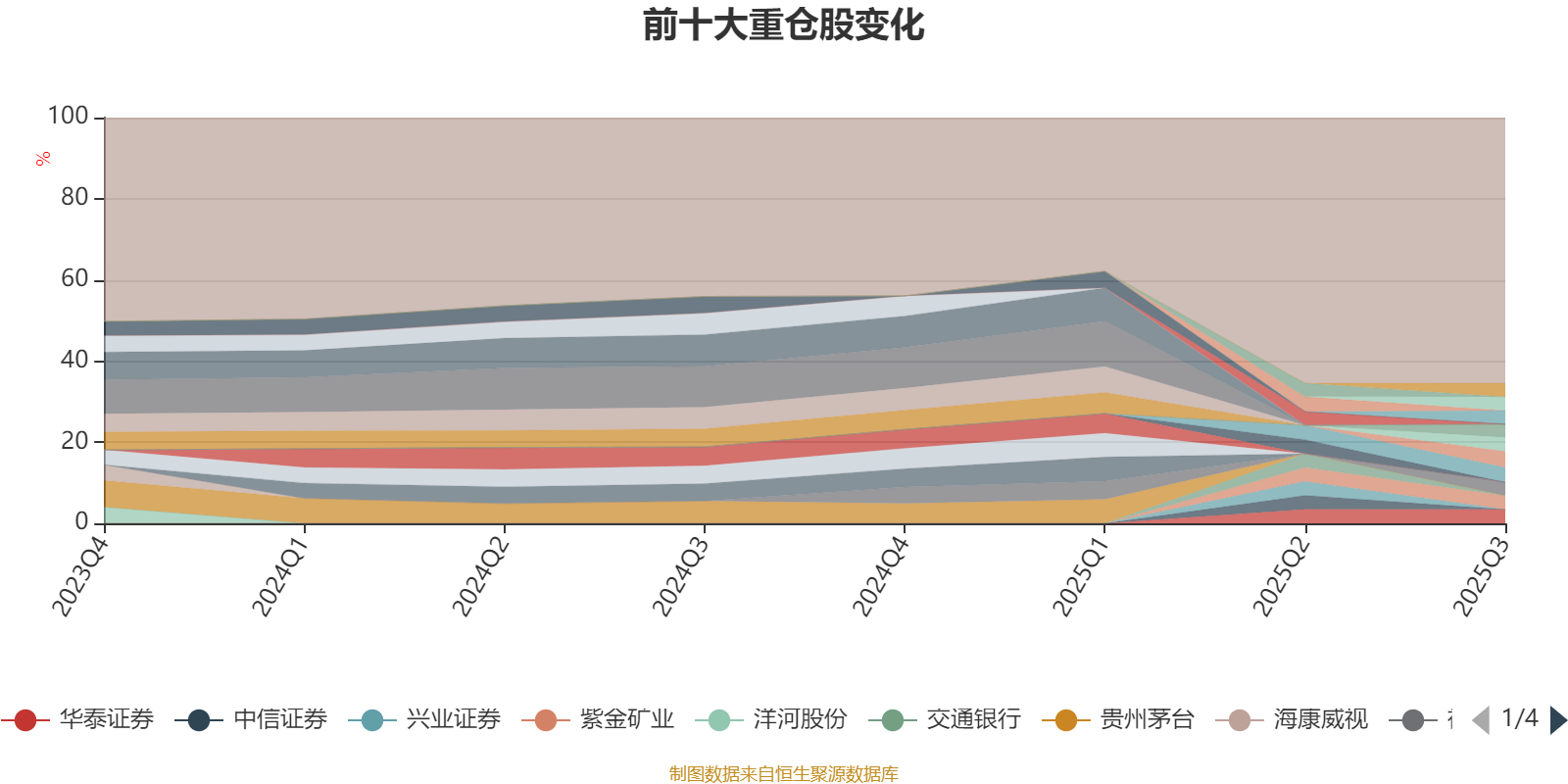 截至2025年三季度末,基金十大重仓股分别是澜起科技、药明康德、华泰证券、正泰电器、紫金矿业、华域汽车、时代电气、宝丰能源、中国中车、福耀玻璃。
